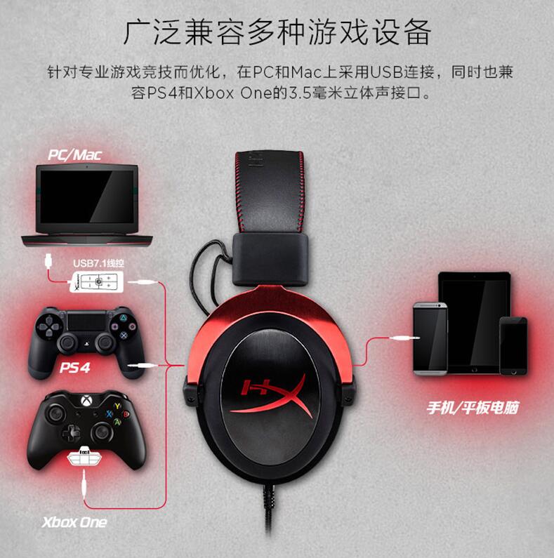 金士頓HyperX Cloud II颶風(fēng)2 頭戴式電競游戲耳機(jī)7.1有線吃雞耳麥
